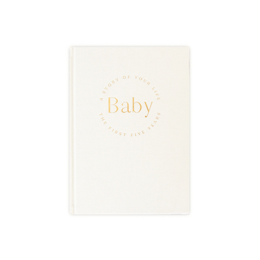 Baby Memory Book with Linen Bag - Pregnancy to 5 Years - Classic White